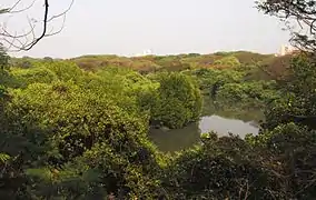 Mangalavanam Bird Sanctuary is located at the centre of Kochi. It covers 2.74 ha (6.8 acres),[11] supports many species of mangroves and is a nesting ground for a variety of migratory birds. The Managalavanam is called the "green lung of Kochi",[12] considering its role in controlling the city's air pollution.[13]