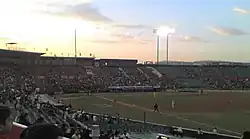 The Tijuana National Stadium (Spanish: Estadio Nacional de Tijuana), also known as Stadium of the Bulls of Tijuana (Estadio de los Toros de Tijuana), is a baseball stadium located in Tijuana, Baja California, in Mexico with a capacity of 17,000, all seated. It was built in 1976 with a capacity of 14,000 and named Cerro Colorado Stadium (Estadio Cerro Colorado), after a supermarket chain based in Baja California. It was expanded in 2006 to its current capacity of 17,000. It is currently known as Chevron Stadium Tijuana (Estadio Chevron) for commercial reasons, and was formerly known as Calimax Baseball Stadium (Estadio de Beisbol Calimax) and Gasmart Stadium (Estadio Gasmart).