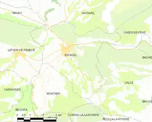 Map of Estagel and its surrounding communes