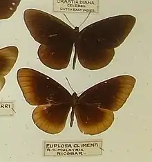 2. Bingham, C.T. (1905). The Fauna of British India, Including Ceylon and Burma Butterflies. Vol. 1 (1st ed.). London: Taylor and Francis, Ltd.. (under Euploea climena simulatrix)