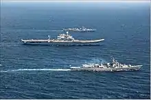 TROPEX 2007 commenced on 30 January 2007 and was conducted in the Arabian Sea.[7][8] The exercise involved fifty ships from the Indian Navy's Western and Eastern Naval Command, including the aircraft carrier INS Viraat, Rajput and Delhi-class destroyers, and Talwar, Brahmaputra and Godavari-class frigates.[7][9] It also involved elements from the Army, Air Force, and the Coast Guard.[7][8] Towards the later stages of the exercise, the navy deployed UAVs, Kamov 31 AEW helicopters, missile defence systems like Barak, Shtil and Kashmir surface-to-air missiles, besides land-attack missiles.[7] During the exercise, participating forces successfully conducted firing of live weapons, including firing of surface-to-air as well as surface-to-surface missiles.[10] In addition, they also tested new operational concepts and learned valuable lessons, which will then be analyzed and used for improving existing operational doctrines.[7][10] "The thrust of this year's edition was to validate the concept of 'Maritime Manoeuvre from the Sea' that is designed to ensure that in a short, swift and intense conflict, the navy is able to directly address and favourably influence the progress and outcome of the air-land battle," said a navy spokesperson.[7]