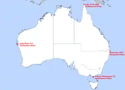 This is a list of the extreme points of Australia (the country, not the continent). The list includes extremes of cardinal direction, elevation, and other points of peculiar geographic interest. The location of some points depend on whether islands and the Australian Antarctic Territory (which is not universally recognised) are included.