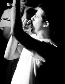 Eyedea freestyling at a show.