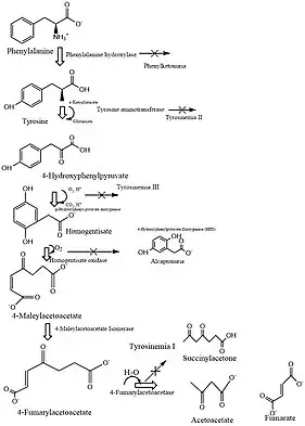 - ↑ "Tyrosinemia type 1 | Genetic and Rare Diseases Information Center (GARD) – an NCATS Program". rarediseases.info.nih.gov. Retrieved 2018-12-13.