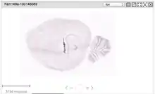 A search was performed on the Allen Brain Atlas using FAM149A. According to the levels of expression provided by the Atlas, FAM149A is not expressed in notable levels within the mouse brain. However, with visual observation of the figure, FAM149A could be found in the ventral posterior complex of the thalamus. This can be seen as the dark vertical line in the center of the sagittal brain slice in the image below. As a comparison, the expression of the protein, actin, is used to demonstrate what a mouse brain appears like with high levels of expression.[14]