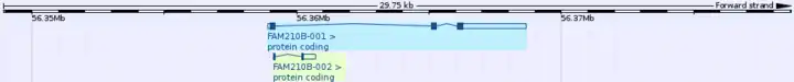 6. 1 2 "Gene: FAM210B (OTTHUMG00000032793) - Summary - Homo sapiens - Vega Genome Browser 64". vega.sanger.ac.uk. Retrieved 2016-05-09.