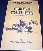 Fast Rules is a simple, playable ruleset for conducting table top wargames with H0 scale World War II miniatures using armor, artillery and infantry and classed as a "mid-level skirmish" wargame.[1] The rules were developed by Mike Reese and Leon Tucker and published as a 24 page pamphlet in 1970 by the Armored Operations Society, an affiliate of the IFW. Guidon Games made a second printing in 1972 and a third printing at an unknown later date. [2] Combat Rules released an full-color, authorized edition in 2021 with a few additions. Compared to the original 5.5x8.5" edition, it has 24 6.14x9.21" pages.[3]