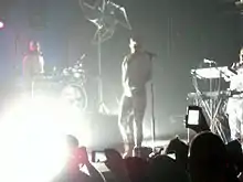 Robyn performed the song on 16 April 2010 on the Norwegian-Swedish talk show Skavlan.[23] A writer from music website Stereogum wrote that Robyn did the song very well live, and commented; "With just a keyboardist doubling as robot hypeman and two drummers, the performance is extremely faithful to the recorded version. It fact, it doesn’t really pop until the end and we get two seconds of Robyn doing the robot."[24] Robyn also performed the song on the All Hearts joint tour with American singer Kelis during the summer of 2010. Robyn opened the show with "Fembot", which was preceded by a computerized voice counting down.[25] Joanna Buffum of MTV Iggy wrote that the song "set the tone for the futuristic electro light show to follow".[26] The song was also included on the set list for the Body Talk Tour.[27] Similar to the All Hearts Tour, the show commenced with robotic voices over the speakers and backed by a heavy beat, before Robyn began singing "Fembot" as multicolored strobes lit the stage.[28] However, for the second North American leg and onwards, "Time Machine" took over as the opening number.[29]