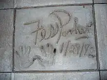 The handprints of Fess Parker in front of Hollywood Hills Amphitheater at Walt Disney World's Disney's Hollywood Studios theme park