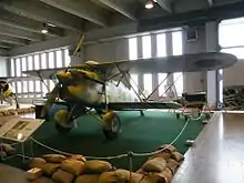 During the short conflict against Yugoslavia, fought in April 1941, the MKHL lost three CR.32s[33] and, on 6 May 1941, the Hungarian Air Force still had 69 Fiat CR.32s on line.[34] In June 1941, when the Kingdom of Hungary declared war on the Soviet Union, the CR.32 fighter equipped two of the units that supported the Hungarian Army on the Eastern Front: 1./I Group of 1st Fighter Wing, based in Szolnok, and 2./I Group, of 2nd Fighter Wing, based at Nyíregyháza.[35] On 29 June, the first aerial combat over Hungary took place, when seven Tupolev SB-2 bombers attacked the railway station at Csap and were intercepted by the Fiat CR.32s from 2/3 Fighter squadron. The Fiat biplanes shot down three of the raiders while incurring no loss to themselves.[36]