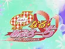 Final Approach (Φなる·あぷろーち, Fuainaru Apurōchi) is a Japanese visual novel developed by PrincessSoft which was released on October 7, 2004. It has been adapted into an anime television series animated by Zexcs and aired from October to December 2004 with original character designs by Aoi Nishimata. The title uses the Greek letter Φ (phi) to represent to the "fi" (ふぁい, fai) in the Japanese transliteration of the English word "final". The series of half-length episodes aired in Japan in October 2004 (back-to-back with W~Wish, a separate series), with the last episode ending a few months later.