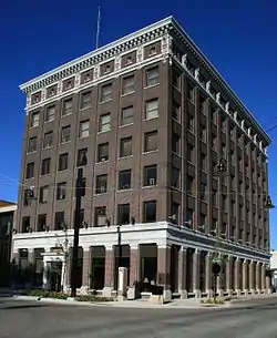 The First National Bank of Mason City, also known as Norwest Bank Building and City Center of Mason City, is a historic building located in Mason City, Iowa, United States. It was designed by the Des Moines architectural firm of Liebbe, Nourse & Rasmussen, and it was the only Mason City commission for this firm.[2] Completed in 1911, it was constructed by C.E. Atkinson of Webster City, Iowa who had built several other H.F. Liebbe designs. The 6½-story building follows the Early Commercial style. It features modestly decorated main floor and attic level with five floors of rather plain brick construction in between. The bank occupied most of the first floor and some of the office space above, while the other office space was taken up by professional offices. By the 1960s the bank occupied the whole building. John Dillinger, Baby Face Nelson, John Hamilton and Tommy Carroll robbed the bank on March 13,1934 and stole about $50,000.[2] Dillinger was wounded in an exchange of gunfire during the heist. The building to the north of the bank was torn down in 1982 and a two-story annex to the bank replaced it. The bank building was individually listed on the National Register of Historic Places in 1997,[1] and as a contributing property in the Mason City Downtown Historic District in 2005.[3] City Center of Mason City Inc. bought the building in 1995, and remodeled it into apartments and offices.[4]