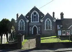 More land was bought adjacent to the chapel in 1840, which allowed a Sunday school to be built in about 1852. Also in that year the chapel was extended and altered as a memorial to Thomas Dicker senior by his grandson. Further changes took place in 1896 when the chapel was re-roofed and refronted in its present Gothic Revival style. By this time the chapel had a resident pastor again,[12] and a permanent Sunday school was started in 1880. After a period of just over 100 years during which four resident pastors had served the chapel, it was again served by visiting or lay ministers from 1962 onwards when Joseph Turner retired after a 38-year pastorate.[15]