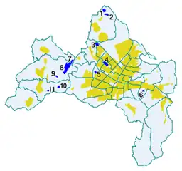 Lakes in the urban area of Freiburg im Breisgau. Location of the Flückigersee (4) in the district of Freiburg