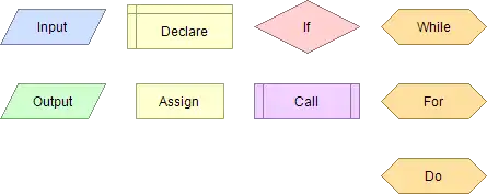 Flowgorithm combines the classic flowchart symbols and those used by SDL diagrams. The color of each shape is shared by the associated generated code and the console window. The colors can be changed to several built-in themes.