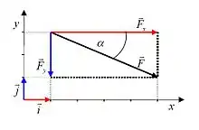 Forces and moments that are at an angle to a coordinate axis can be rewritten as two vectors that are equivalent to the original (or three, for three dimensional problems)—each vector directed along one of the axes (Fx) and (Fy).