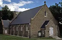 The last building constructed at Fort Yellowstone was the chapel, located just south of the original guardhouse. Army policy did not mandate that army forts provide places of worship. However, at the insistence of park superintendent Pitcher, U.S. Commissioner Meldrum and Wyoming state senator Francis E. Warren, Congress appropriated the funds for the construction of a chapel in 1909 and the building was finished in January 1913.[21] On September 19, 1914, Katharine Piercy Edmunds and Captain Albert Ady King, 1st U.S. Cavalry, were the first couple to be married in the new chapel. Reverend Pritchard, an Episcopalian missionary, traveled to the fort from Emigrant, Montana to perform the ceremony.[9]