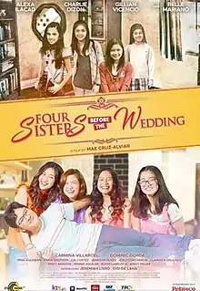 Four Sisters Before the Wedding is a 2020 Filipino Family comedy-drama film directed by Mae Cruz-Alviar, produced by Star Cinema and SCX. It serves as both a prequel and a sequel to the 2013 film, Four Sisters and a Wedding.[1] It premiered on December 11, 2020, via KTX, iWant TFC, Sky Cable PPV, Cignal PPV as well in SM Cinemas and CityMall Cinemas in select modified general community quarantine areas.[2]