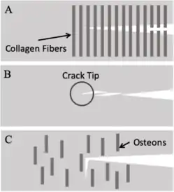 {{cite book}}: CS1 maint: multiple names: authors list (link) CS1 maint: numeric names: authors list (link) - ↑ Vashishth, D; Tanner, K.E; Bonfield, W (2000). "Contribution, development and morphology of microcracking in cortical bone during crack propagation". Journal of Biomechanics. 33 (9): 1169–1174. doi:10.1016/s0021-9290(00)00010-5. ISSN 0021-9290. PMID 10854892.