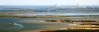 The Fred Hartman Bridge is a cable-stayed bridge[2] in the U.S. state of Texas spanning the Houston Ship Channel. The bridge carries 2.6 miles (4.2 km) of State Highway 146 (SH 146), between the cities of Baytown and La Porte[3] (east of Houston). The bridge is also expected to carry State Highway 99 (SH 99) (Grand Parkway) when it is completed around Houston.[4]