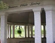 The main hotel building (Windsor) was destroyed by fire in 1897.[19] It was rebuilt on an even grander scale. Three major springs were located on the French Lick resort's property: Bowles (renamed Lithia), Proserpine, and the better-known Pluto. The area's mineral water and baths were alleged to cure more than fifty ailments, including gout, alcoholism, and rheumatism, among others.[20]