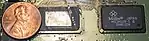 One of the two 1T-SRAM RAM modules shaven down to expose the die