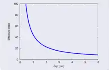 A gap surface plasmon (or gap plasmon) is a guided electromagnetic wave which propagates in a transparent medium located between two extremely close metallic regions. Propagating in a gap between metals forces light to propagate partially inside the metallic regions,[1] causing the gap plasmon to slow down.