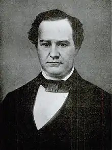 George Dennison Prentice (December 18, 1802 – January 22, 1870) was an American newspaper editor, writer and poet who built the Louisville Journal into a major newspaper in Louisville, Kentucky, and the Ohio River Valley, in part by the virulence and satire in its editorials, which some blamed for a bloody election day riot in 1855. A slaveholder, Prentice initially supported Unionist candidate John Bell in the 1860 U.S. presidential election, and after the American Civil War, he urged Kentucky to remain neutral. Both of his sons joined the Confederate States Army, one dying in 1862, and Prentice's editorials lampooned Kentucky's military governor, Union General Stephen G. Burbridge. Prentice later opposed Congressional Reconstruction. He wrote a biography of Henry Clay published in 1831, an 1836 poem published in the McGuffey Readers, and a collection of his humorous essays was published in 1859 and revised after his death.[1][2]