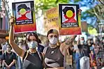 Shortly after protests began in the United States in late May 2020 seeking justice for George Floyd, an African-American who was murdered during an arrest by Minneapolis police, people in Australia protested to show solidarity with Americans and the Black Lives Matter movement, as well as to demonstrate against issues with police brutality and institutional racism, racism in Australia, and Aboriginal deaths in custody.[1] Vigils and protests of thousands of participants took place nationwide.