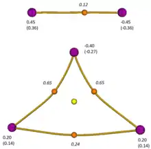 In an atoms-in-molecules analysis of GeH, 3 critical points (2 attractors and a bond critical point) were found.[6] Computed natural bond order and atoms-in-molecules charges both showed a positive charge on germanium and a negative charge on the hydrogen, indicating a significant charge transfer to hydrogen and generating a Ge+H− polarization. Similar results were found for Ge2H, with a positive charge on both germanium atoms and a negative charge on the hydrogen. However, there were 3 bond critical points found, as well as 1 ring critical point.