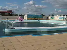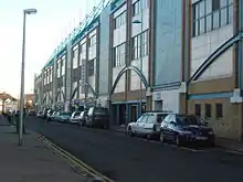 The main source of employment was at Chatham Dockyard, two-thirds of which lay within the boundaries of Gillingham. When it ceased to be a naval base in 1984, there was significant unemployment. A World Heritage Site application has been made for the Dockyard and its defences.[15] Since the 1980s, Gillingham has rebuilt its economic base and the Gillingham Business Park was set up 3 miles (4.8 km) from the town centre, to attract investments and diversify economic activity.[16] The business park and ice rink were an early commission for Grimshaw Architects.[17]