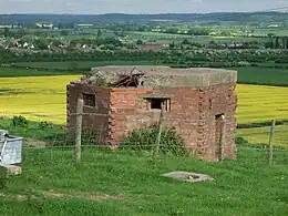 There are few remaining physical examples of Gotham's wartime past. The word Gotham was removed from the face of the school building and from all signs and direction posts during the Second World War to confuse any enemy troops that may have invaded. The pillbox pictured is the only remaining structure dating from the Second World War in the village. It was one of two pillboxes erected to form a defence for the village and also to serve as a searchlight battery. The damage to the pillbox was caused after the war and was not due to enemy action.[6]