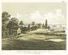 In 1636, Gowanus Bay – named after Gauwane (Gouwane, lit. "the sleeper"), a Canarsee Indian[2][3] – was the site of the first settlement by Dutch farmers in what is now Brooklyn.[4] The ponds of Gowanus meadowlands served to drive early settlers' tide-powered gristmills which were situated along the Gowanus Creek. During the American Revolutionary War, Gowanus was the scene of fighting in the Battle of Long Island and American soldiers positioned themselves in Gowanus Heights (now Park Slope), where they had full view of the British ships as they made landfall in the Bay.[5][6]