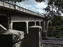 Grafton Bridge is a road bridge spanning Grafton Gully in Auckland, New Zealand. Built of reinforced concrete in 1910, it connects the Auckland CBD and Karangahape Road with Grafton. It spans about 97.6 metres (320 feet), rises 25.6 metres (84 feet) above the abutments to a height of around 43 metres (141 feet) over the gully. When the bridge was constructed, it contained the largest reinforced concrete arch in the world.[2]