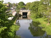 The Grand Canal (Irish: An Chanáil Mhór) is the southernmost of a pair of canals that connect Dublin, in the east of Ireland, with the River Shannon in the west, via Tullamore and a number of other villages and towns, the two canals nearly encircling Dublin's inner city. Its sister canal on the Northside of Dublin is the Royal Canal. The last working cargo barge passed through the Grand Canal in 1960.[1]