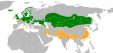 | Green: breeding, orange: non-breeding | |
