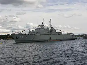HSwMS Visborg (A265) previously (M03), was a command/auxiliary ship in the Swedish Navy and was a part of the 4th Naval Warfare Flotilla. She was decommissioned 2010. HSwMS Trossö is going to replace her role as a support ship at the 4th Naval Warfare Flotilla.