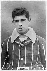 Chidgey was the elder son of the innkeeper at the Angel Inn in Flax Bourton.[2] He played as a professional cricketer for Somerset as a lower-order batsman and wicketkeeper and made his debut in the game against Gloucestershire in 1900.[3] But with the amateurs Archie Wickham, Henry Martyn and Arthur Newton often available, Chidgey had just two further games in the 1902 season, and then did not reappear for six seasons. In the 1901 census, when he is living with his parents, he is listed as a "merchant's clerk".[2]