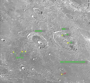 - ↑ The geologic history of the Moon. USGS Professional Paper 1348. By Don E. Wilhelms, John F. McCauley, and Newell J. Trask. U.S. Government Printing Office, Washington: 1987. Table 12.2.