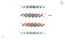 The T block has a chemical formula of MeL2MeS8O142-. The point group symmetry of the T block is . One T block consists of 4 oxygen layers with the two MeL atoms substituting two oxygen atoms in the middle two layers. In one T block, there are both MeS-centered octahedra and MeS-centered tetrahedra.