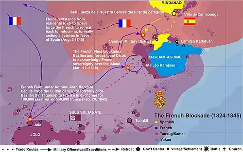 - 1844–45 - French Navy blockades Basilan's premier ports