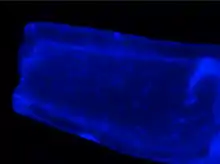 A longitudinal cross section of a polysulfone hollow fiber membrane intraluminally cultured with 3T3 fibroblasts and stained with DAPI.