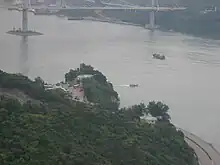 Permanently mounted rooftop binoculars are available for visitors to view Tsing Ma Bridge which links Tsing Yi on the east to Ma Wan on the west, crossing Ma Wan Channel. It is part of the Lantau Link which, with three long span bridges, links the New Territories and Chek Lap Kok, where the Hong Kong International Airport is located.