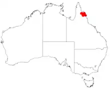 This species grows in northern Queensland in heath or shrubby woodland on shallow rocky soils over sandstone.[3]