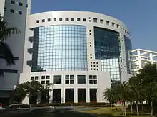 Donated by Shaw Foundation,[18] Shaw Auditorium is a 4-storey multi-purpose auditorium designed for concerts, lectures, musicals and visual productions. The building consists of three superimposed elliptic rings surrounding a sculptural core. The rings that blend into the architecture provide shade and rain protection around the building.[18] The auditorium is equipped with modular seating that can be adapted to allow for multiple arrangements, ranging from 850 to up to 1300 seats.[19] Its curved walls can function as a 360-degree projection screen, enabling audio-visual experiences.[20]