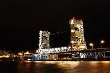 View of the Portage Lift Bridge from Houghton's Waterfront Trail.