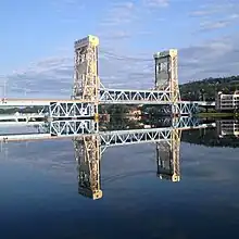 This is a shot of the Portage Lake Lift Bridge that connects the cities of Hancock and Houghton in Michigan