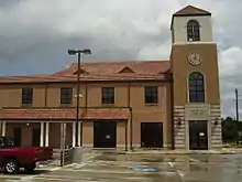 In 1892, William Marsh Rice, a Houston businessman and philanthropist who later chartered Rice University, donated $200,000 for the construction of a free public library.[3] The facility opened in 1895 and obtained its own building in 1904 with financial assistance from Andrew Carnegie.[4] Betty Trapp Chapman wrote in The Houston Review that the city's women "were instrumental" in the library's establishment and that the educated women "had long recognized the need for a library to serve the community."[5] Julia Ideson was named its first librarian and she hired one employee. Located at the corner of Travis and McKinney in what is now known as Downtown Houston, it originally housed 10,000 volumes. By 1907, 10,000 Houstonians held accounts at the library. By 1913, the library counted seven persons on its payroll.[6] The city changed the name from Carnegie Library to Houston Public Library in 1921. By this time, they had outgrown their space and relocated several staff members to the Harris County Courthouse. A few years later, the library sold its property to raise money for a larger facility.[7]