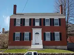 The first of the How houses to be built is the Daniel How House at 23 Danforth Street. Built in 1799, it is a 2+12-story brick building, trimmed with granite, and featuring a Doric entrance portico. It was built by Daniel How, a native of Methuen, Massachusetts, on land belonging to his father-in-law. The second house, that of Daniel's son John, was built by Daniel as a wedding present for his son in 1817. It stands at 40 Pleasant Street, and has similar Federal styling to the father's house. Its entrance is recessed in an archway, with sidelight and fanlight transom windows. The third house, a double house at 30–32 Pleasant Street, was built in 1818 by Daniel's brother Joseph. It is three stories in height, built of brick with granite trim like the others, and has entrances styled similar to those of John's house.[2]
