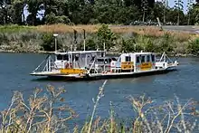 The Howard Landing Ferry (also called J-Mac, J-Mack Ferry, Steamboat Slough Ferry, or Grand Island Ferry) is a cable ferry that operates between Ryde and Ryer Island, crossing Steamboat Slough in the Sacramento-San Joaquin River Delta in Solano County, California. The California Department of Transportation (Caltrans) operates the vehicle roll-on/roll-off service, which is classified as part of California State Route 220.[1] The free ferry service operates 24 hours a day, 7 days a week. Boat operators are on duty 24 hours a day to provide service to individual passengers and motorists crossing Steamboat Slough.[2]